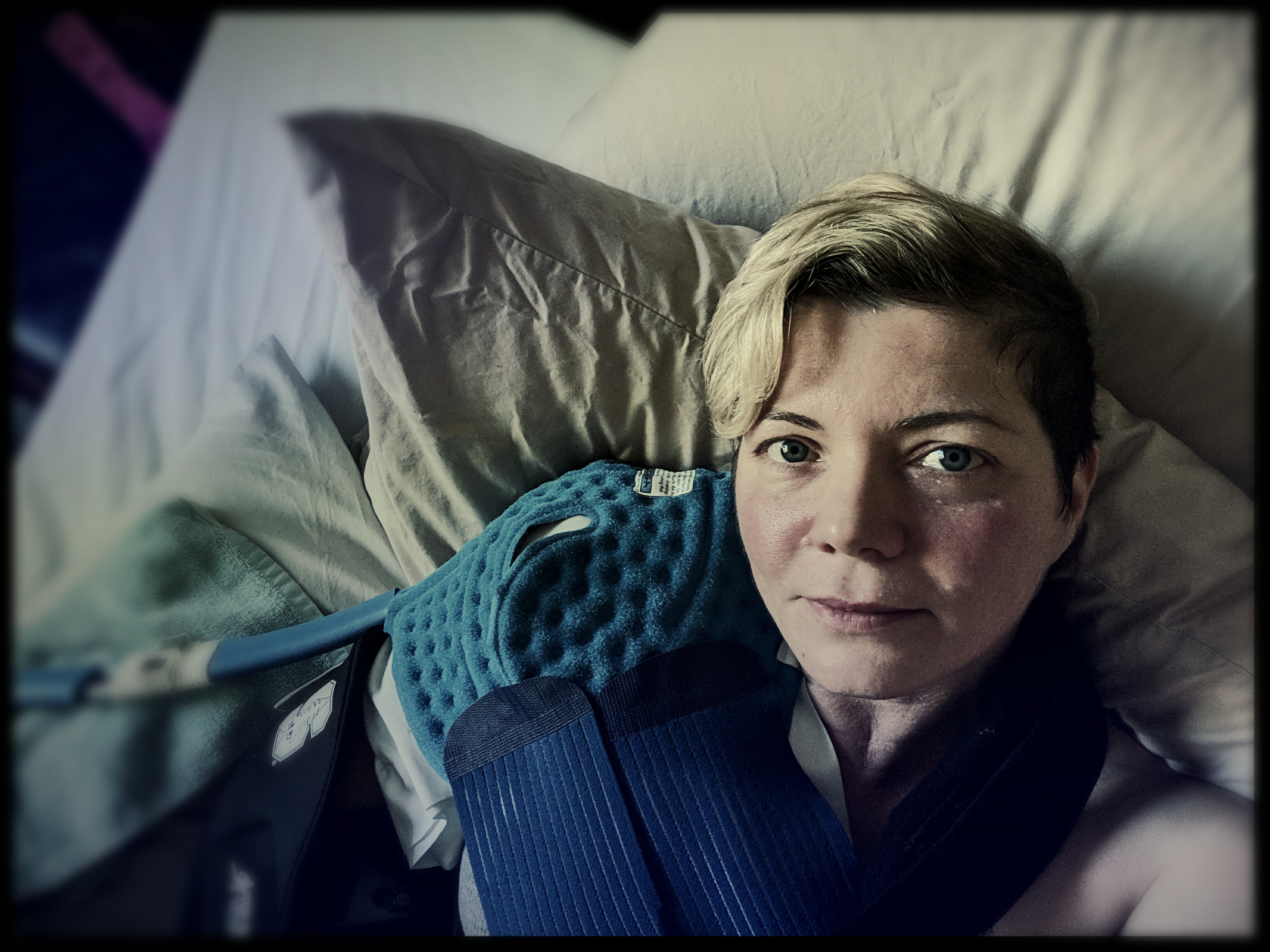 Daha önce ameliyat oldum birkaç kez, ama hiç bu kadar ağrılı ve hayatı bu kadar kısıtlayan bir ameliyat geçirmemiştim. Omuz, eklem ve kemik ağrısı bambaşka imiş gerçekten. Bir yandan narkotik ağrı kesiciler, bir yandan buz makinesi ile yatakta etrafımda yastıktan bir duvar ile uyuyabildim günlerce. yastık duvar derken abartmıyorum, akşam yatağa girerken kendimi adeta drakula filminde tabut içine yatan vampir gibi hissediyordum. Uyurken yanımda harıl harıl çalışan ve kolumu buz gibi soğutan buz makinası da cabası…